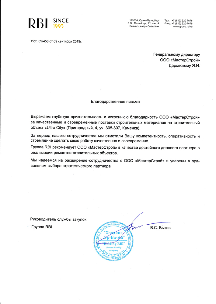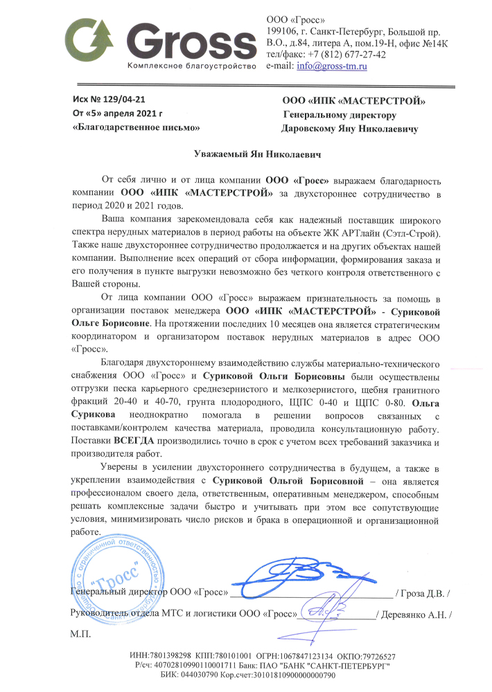 Благодарственные письма